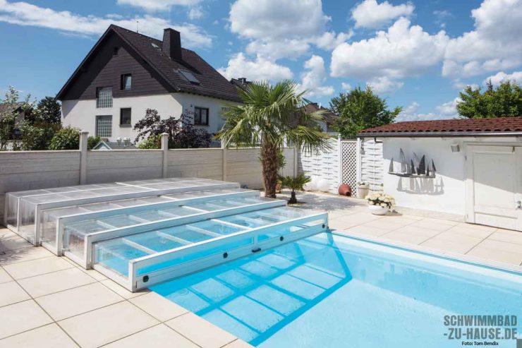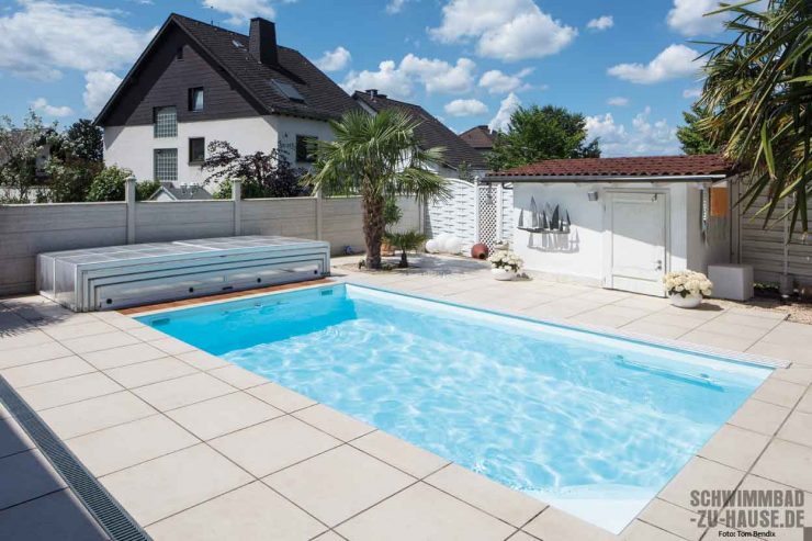 Für den eigenen Garten hinter dem Haus wünschte sich dieser Bauherr ein Becken, in dem man auf kleinem Raum schwimmen kann. Damit dies bei Wind und Wetter möglich ist, sollte der neue Pool zudem mit einer Überdachung ausgestattet sein. Das entstandene maßgeschneiderte Poolprojekt überzeugt in jeder Hinsicht.