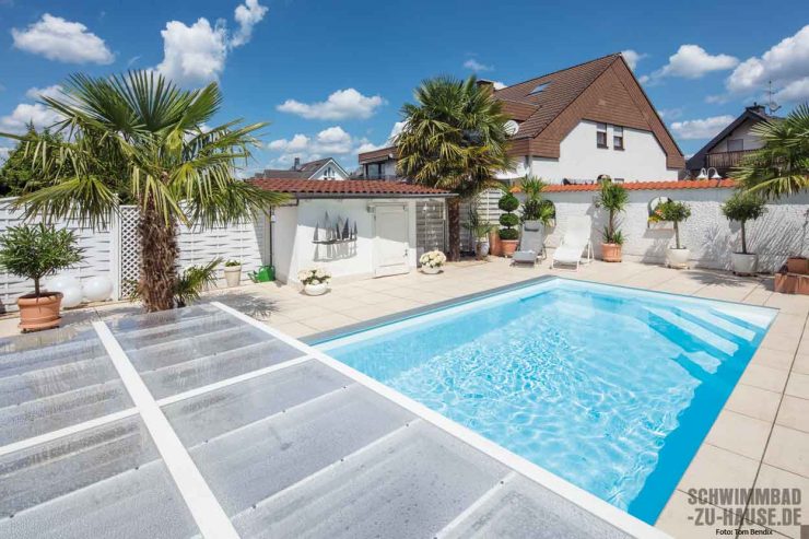 Sport als Ausgleich zu einem langen Tag im Büro ist für die meisten Menschen zum festen Bestandteil des Alltags geworden. In diesem Zusammenhang erfreut sich auch das Schwimmen immer größerer Beliebtheit. Denn: im Wasser werden die Gelenke entlastet – und dennoch erhält der Körper ein umfassendes Work-out. Wäre da nur nicht der Weg ins öffentliche Schwimmbad oder das nächstgelegene Fitnessstudio mit Pool. Warum also nicht den Pool nach Hause holen? Nach dem Schwimmtraining unter Palmen die beanspruchten Muskeln entspannen – das war der Traum dieses Bauherren aus der Nähe von Koblenz. Ein Outdoor-Pool im Garten sollte es deshalb werden.