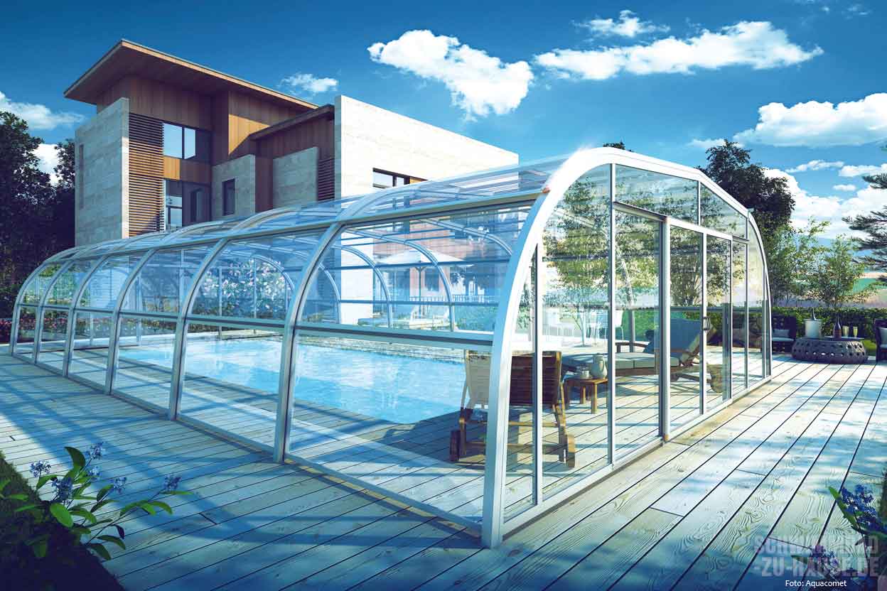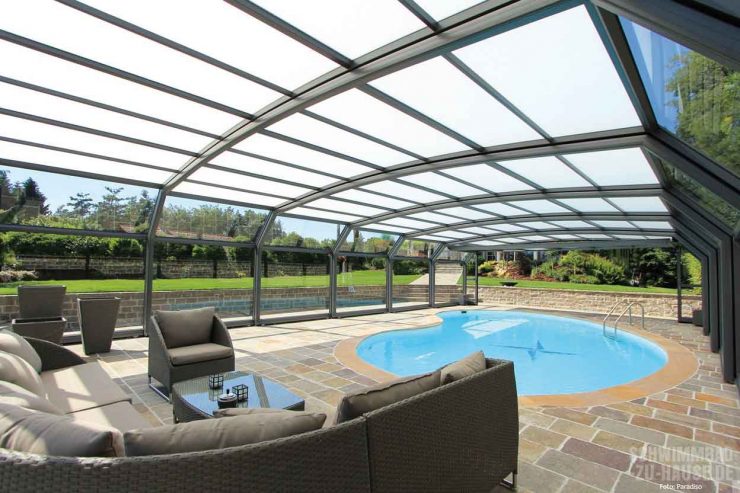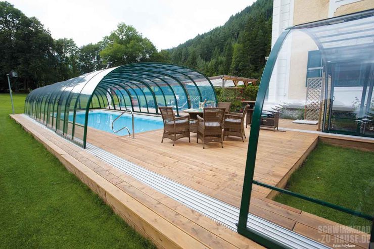 Individuelle Poolüberdachungen gibt es in sämtlichen Ausführungen. Individualität ist ein Attribut der Moderne. So kann man sich heute beinahe alles personalisieren und damit auf die eigenen Bedürfnisse zuschneiden lassen. Dies gilt auch für hohe Schwimmbadüberdachungen, die vor allem damit punkten, dass sie die Badesaison verlängern. Ob Farbe, Form, Höhe, Führungssysteme oder Motorisierungen – für jeden Poolbesitzer gibt es die passende Überdachung.