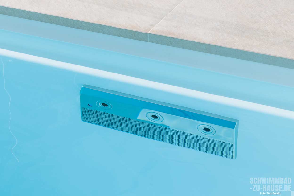 Idealer Begleiter für eine Wellnessoase, die mit den Elementen der Natur spielt, ist ein Schwimmbecken, das Sonne, Wärme und Kälte trotzt. Besonders zäh und leicht ist glasfaserverstärkter Kunststoff, den Riviera Pool für einen Teil seiner Fertigbecken verwendet. Diese werden mit einem Verfahren hergestellt, das das Material extrem widerstandsfähig macht. Doch ebenso wie extreme Witterungsbedingungen kann auch Chlor dem hochwertigen Kunststoff nichts anhaben. Einmal in eine Form gebracht, bleibt der Pool stabil. In Ostwestfalen musste das Becken noch während der Rohbauphase in das Haus gehoben werden. Eine durchaus knifflige Aufgabe. Doch dank der langjährigen Erfahrung der Poolprofis Löchte und einer von ihnen gefertigten Holzüberdeckung mit tragfähiger Unterkonstruktion blieb das Schwimmbecken auch bei den nachfolgenden Bauarbeiten unbeschädigt.