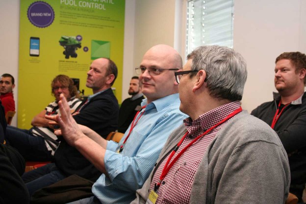 Im letzten Vortrag des Tages ging es dann um das Smart Home System „Aquastar Air“, das ein Partnerschaftsprodukt der Firmen Peraqua und Loxone darstellt. Günther Pichler von Loxone referierte dabei nicht nur über die Vorzüge der smarten Gebäudeautomation, sondern zeigte auch direkt vor Ort, wie sich das System im Livetest schlägt. Die Gäste waren äußerst beeindruckt von der vollautomatischen Steuerung des gesamten Pools, mit der Möglichkeit der Überwachung des Pools via kostenloser Loxone App.