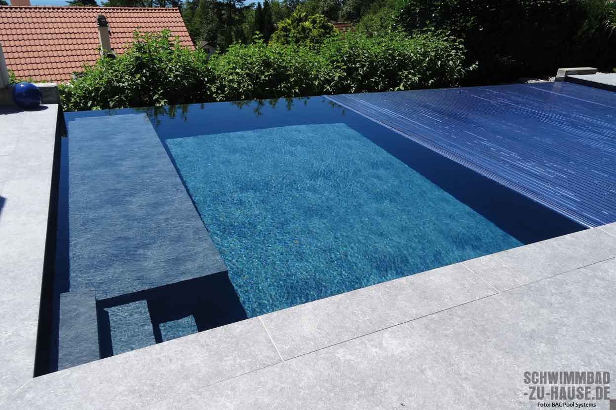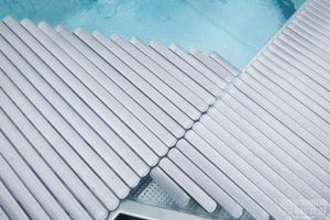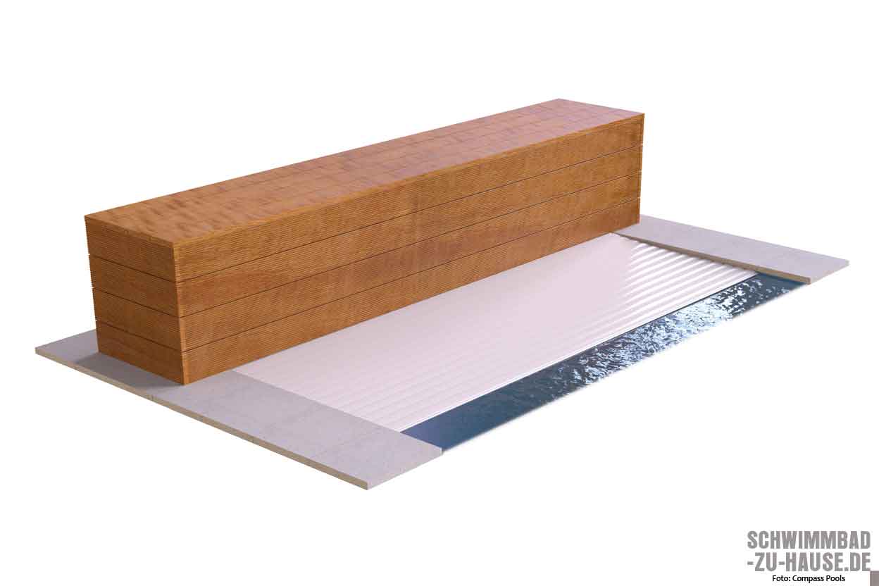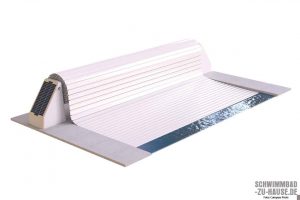 Bei der Auswahl einer passenden Rollladenabdeckung hat der Bauherr gleich mehrere Möglichkeiten. Hierbei ist es entscheidend, ob der Pool noch in der Planung ist, sich bereits im Bau befindet oder saniert werden soll. Grundsätzlich unterscheidet man zwischen Ober- und Unterfluranlagen. Das Oberflursystem wird über der Wasseroberfläche am Beckenrand angebracht und ist die kostengünstigere Alternative. Mit einer Sitzbank aus Holz oder PVC kann die Wickelwelle elegant verkleidet werden. In der Vergangenheit haben sich gesetzliche Vorgaben bezüglich der in der Fertigung zugelassenen Grundmaterialien verschärft. Deshalb ist es notwendig, aufgerollte Überflur-Lamellenabdeckungen vor der immer intensiver werdenden Sonneneinstrahlung durch eine Verkleidung zu schützen. Eine Oberflurlösung kann problemlos auch im Nachhinein in den Pool integriert werden. Besonders exklusiv ist die Unterflurvariante. Sie wird im Inneren des Beckens montiert und kann mithilfe eines Schachts im Boden sogar komplett unsichtbar sein. Eine nachträgliche Installation ist auch in diesem Fall häufig möglich.