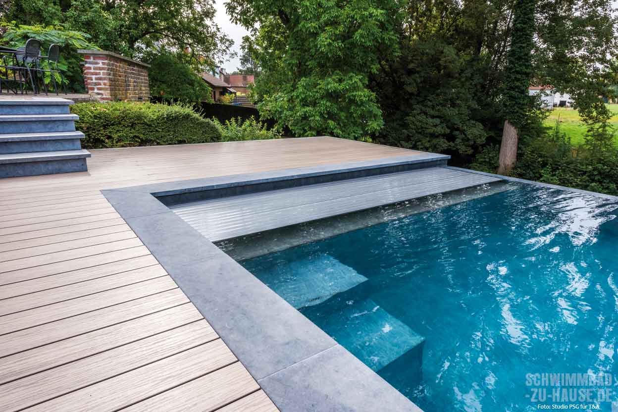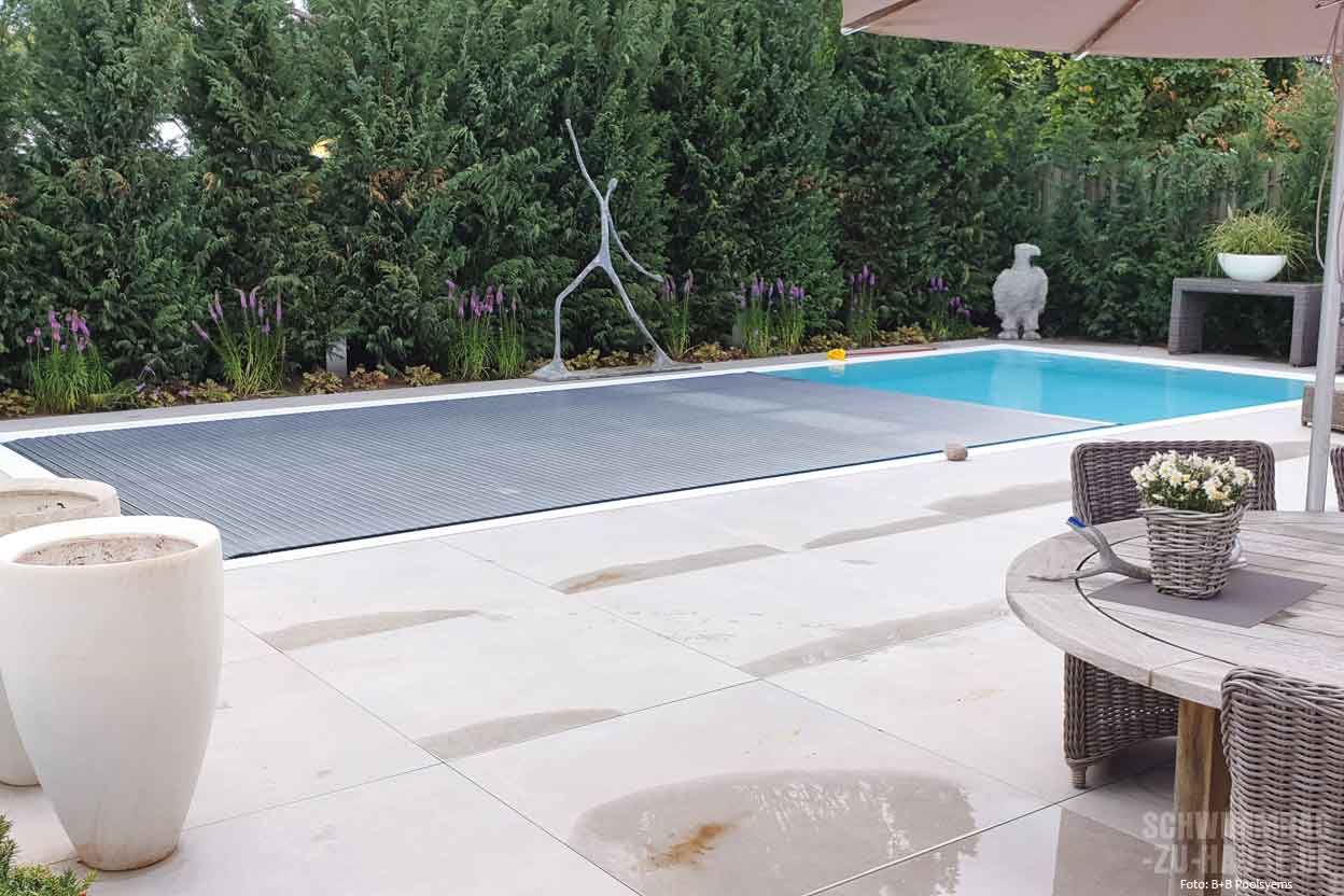 Bei der Planung eines Pools macht es von Anfang an Sinn, sich auch Gedanken über die Poolabdeckung zu machen. Es gibt verschiedene Systeme, das Becken sicher abzudecken und somit zuverlässig vor Schmutz und Wärmeverlusten zu schützen. Eine optisch besonders dezente und im Gebrauch komfortable Lösung ist die automatische Rollladenabdeckung. Sie ist ein absolutes Must-have für jedes Schwimmbad – ob drinnen oder draußen.