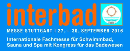 Die interbad, internationale Fachmesse für Schwimmbad, Sauna und Spa, bietet mit ihrer stimmigen Kombination aus Ausstellung, Kongress und umfangreichem Rahmenprogramm den idealen Rahmen zum fachlichen Austausch, Netzwerken und Erleben der neusten Trends für Pool, Sauna und Wellness. Die nächste interbad findet vom 27. bis 30. September 2016 auf der Messe Stuttgart statt.