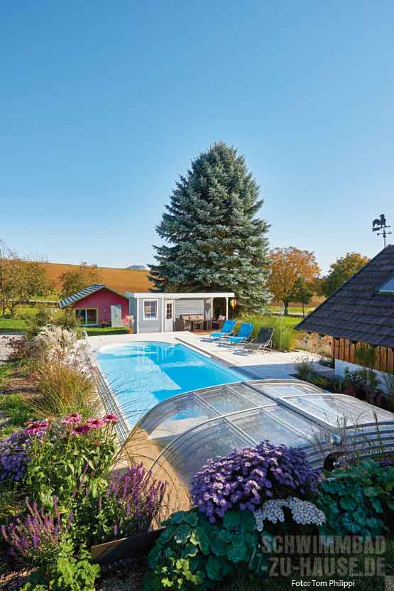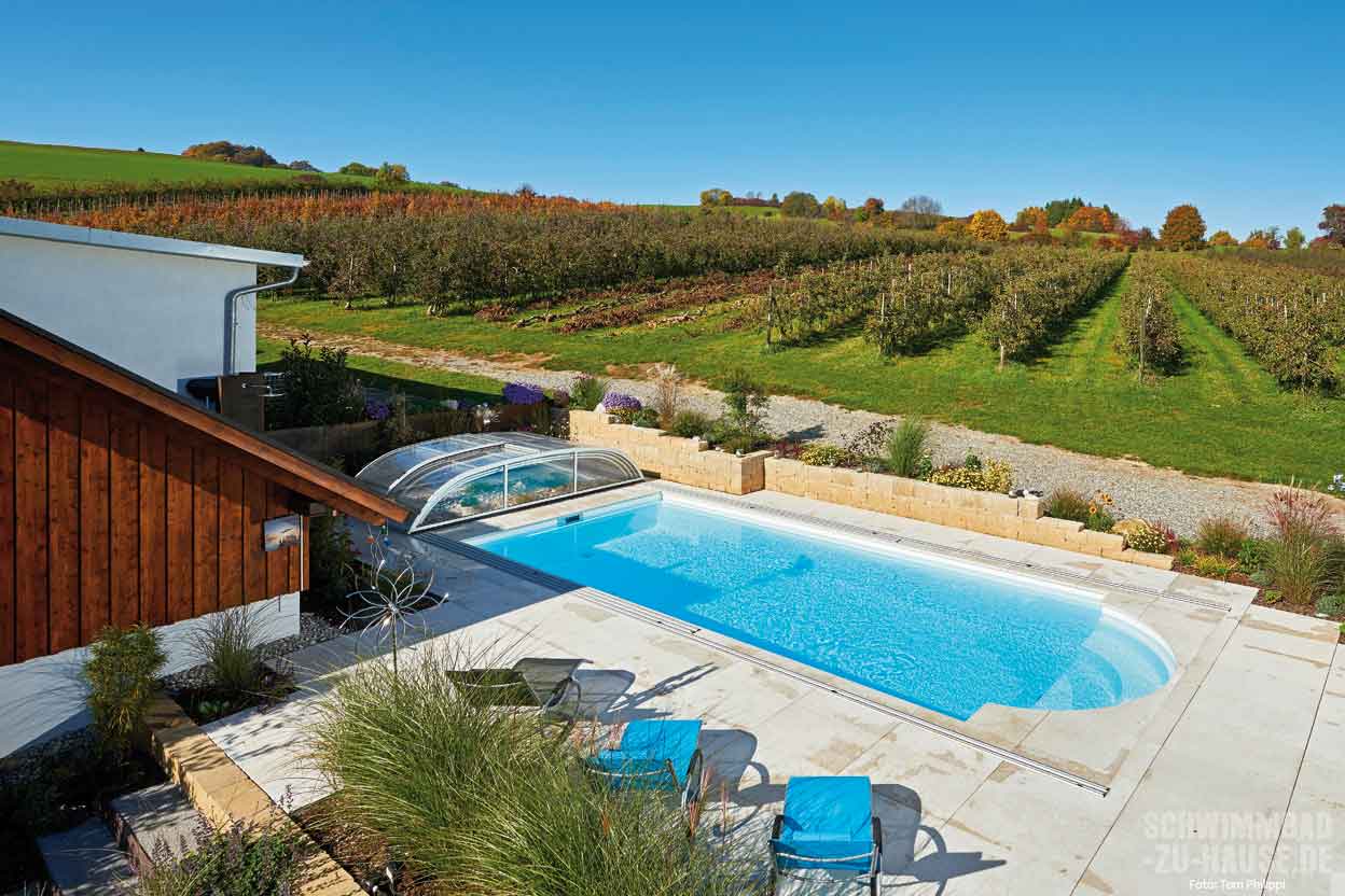 Wenn man etwas wirklich will, dann setzt man es auch um. Bei dieser Familie aus dem Hegau in der Nähe des Bodensees ging mit dem eigenen Outdoor-Pool im Garten jüngst ein Lebenstraum in Erfüllung. Das großzügige Becken mit passender Schwimmbadüberdachung lockt mit stets sauberem Wasser und ansprechender Optik. Badefreuden und Entspannung für die Bauherren sind damit jetzt fester Bestandteil des Tagesablaufs.