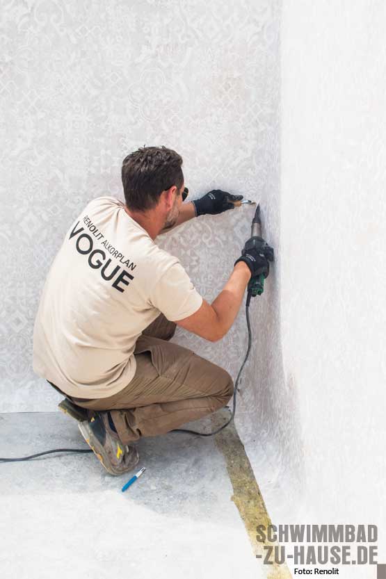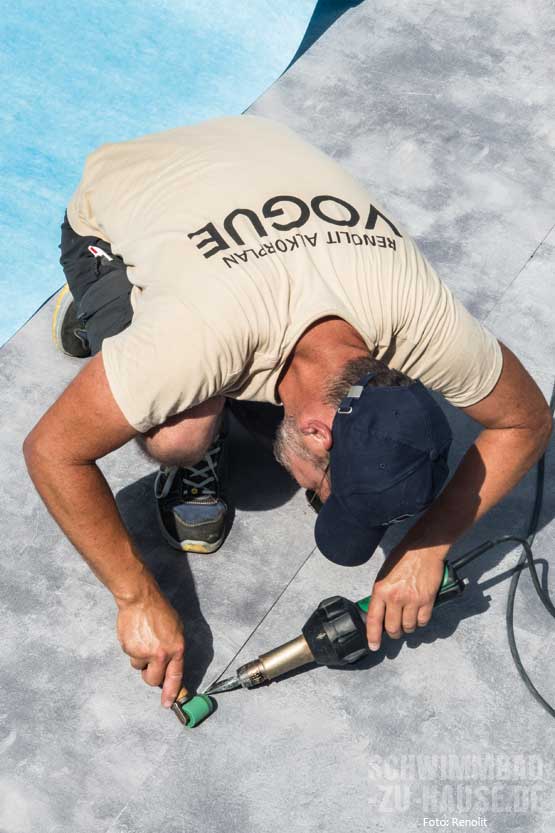 Die Konstruktion eines Folienpools basiert häufig auf einem gemauerten oder betonierten Beckenkörper. Oft kommen isolierte Polystyrol-Systembausteine zum Einsatz, die auf einer Betonbodenplatte aufgebaut werden. Die Abdichtung erfolgt durch die Vor-Ort-Verschweißung einer 1,5 bis 2 Millimeter starken Folie, wodurch der Pool innerhalb von etwa 28 Tagen einsatzbereit sein kann. Dennoch sind Folienpools nicht ohne Herausforderungen: Eine vollständige Faltenfreiheit, insbesondere an Stufen, Schrägen und Einbauteilen, kann nicht garantiert werden. Zudem muss die Folie regelmäßig gewartet und gegebenenfalls ausgetauscht werden. Um die Langlebigkeit zu gewährleisten, ist eine sorgfältige Kontrolle der Wasserchemie notwendig, mit einem pH-Wert zwischen 7,0 und 7,4 und einem Chlorgehalt von 0,30 bis 0,80 ppm. Es ist ratsam, die Wassertemperatur unter 30?Grad zu halten, da höhere Temperaturen die Folie beschädigen können. Darüber hinaus sollte auf den Einsatz von Kupfersulfat verzichtet werden, um Verfärbungen zu vermeiden.