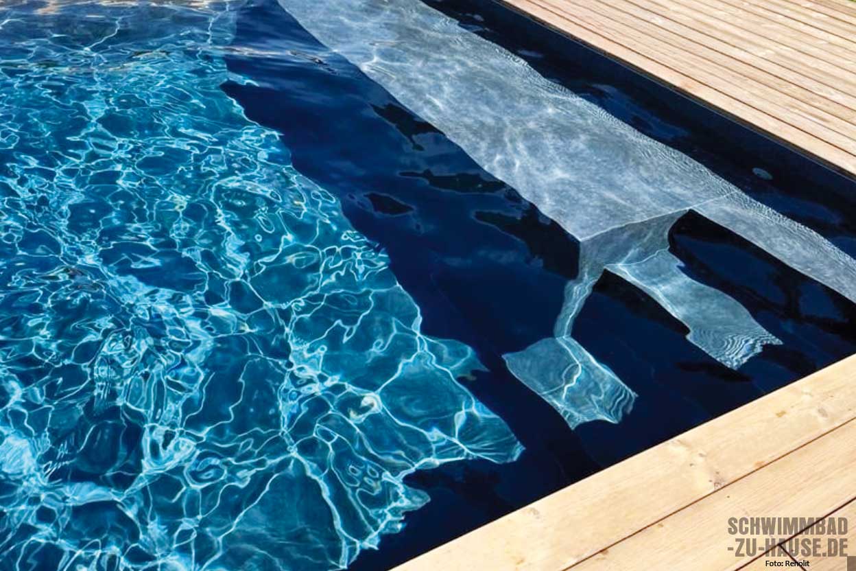 Charakter des Pools entscheidend prägen können. Die Farbe des Wassers wird durch die ausgewählte Folie verstärkt und betont. Der visuelle Effekt, wenn die Folienfarbe mit der Wasserfarbe in Einklang steht, ist atemberaubend. Es schafft eine optische Illusion, bei der der Pool tiefer oder breiter wirken kann, je nach den gewählten Farben und Mustern.