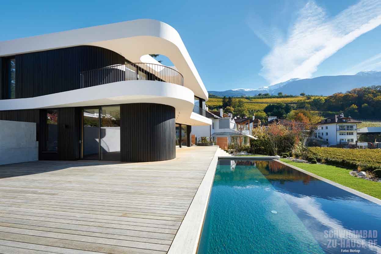 Weinberge, frische Luft und freie Sicht auf die malerischen Alpen. So natürlich und idyllisch ist Südtirol. Naturverbunden war das Ehepaar aus Brixen schon immer – designaffin auch. Das außergewöhnliche Haus mit seiner weißen, wellenförmigen Fassade war daher ein Traum, der für die Holzhändler in Erfüllung ging. Für den Garten sollte es als i-Tüpfelchen dann ein Pool sein. Der Anspruch hier: moderne Materialien für eine außergewöhnliche Optik, geradlinig und keine Chemie.