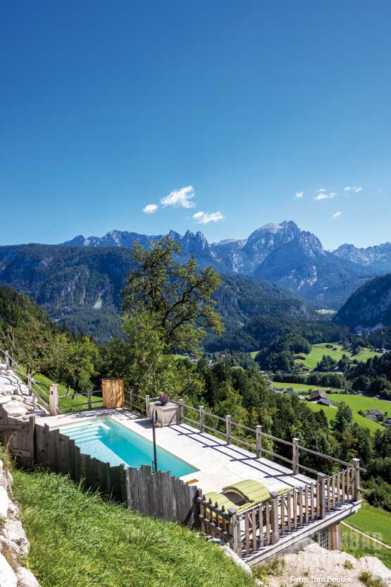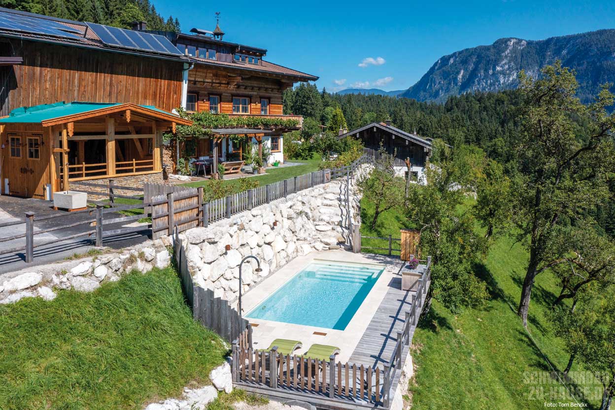 Ein ländlicher Bauernhof inmitten einer fantastischen Gebirgskulisse und ein moderner Pool – ob das wohl zusammenpasst? Bei diesem Objekt im wunderschönen Salzburger Bergland auf jeden Fall! Dank natürlicher Materialien als verbindendes Element fügt sich das Schwimmbad harmonisch in die