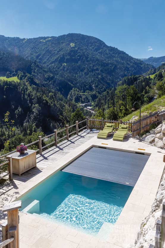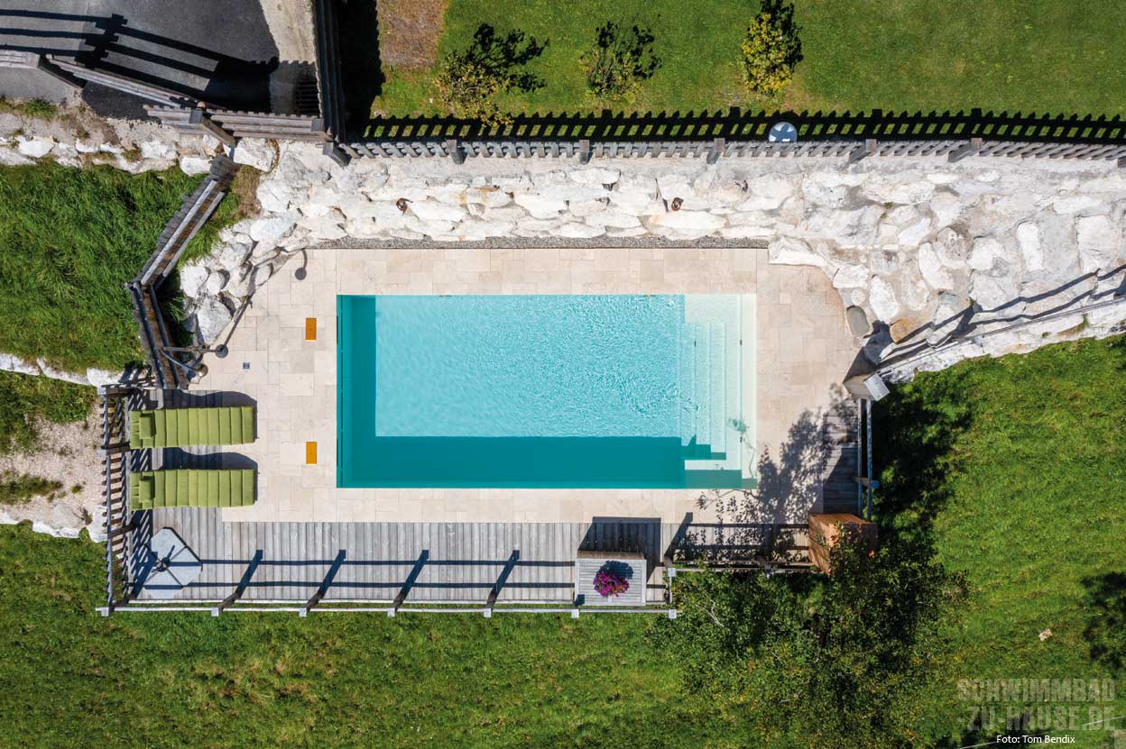 Blätter herausfischen, alles andere geht automatisch“, freut sich die Familie über die Zeitersparnis und lobt die tolle Beratung durch die Sopra Salzburg. Da das Schwimmen in dieser Höhenlage ohne Heizung oft nicht möglich wäre, sorgt eine Wärmepumpe für angenehme Wassertemperaturen.