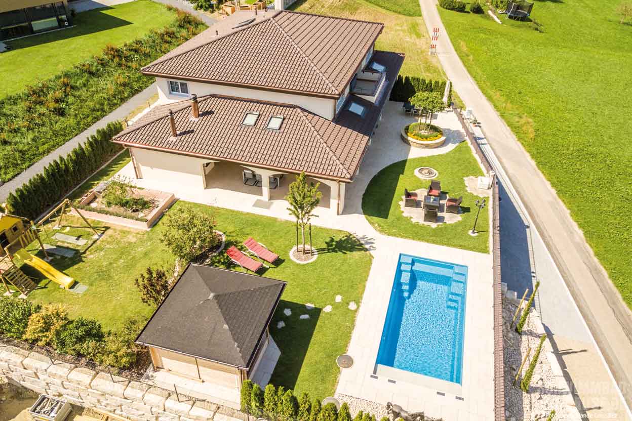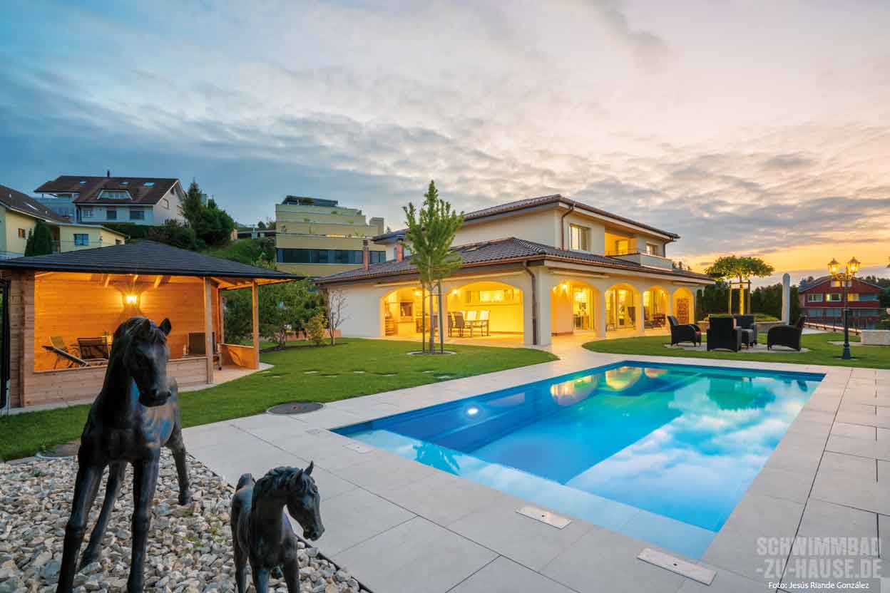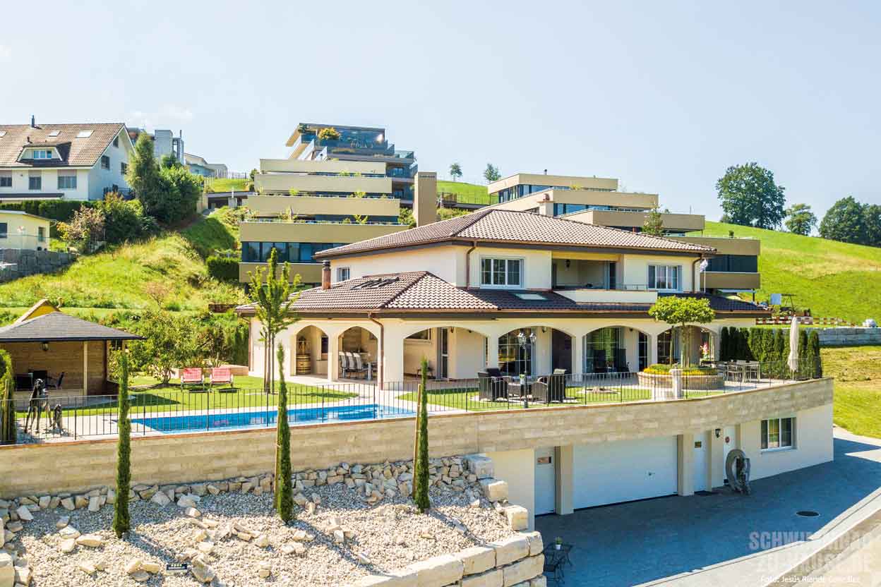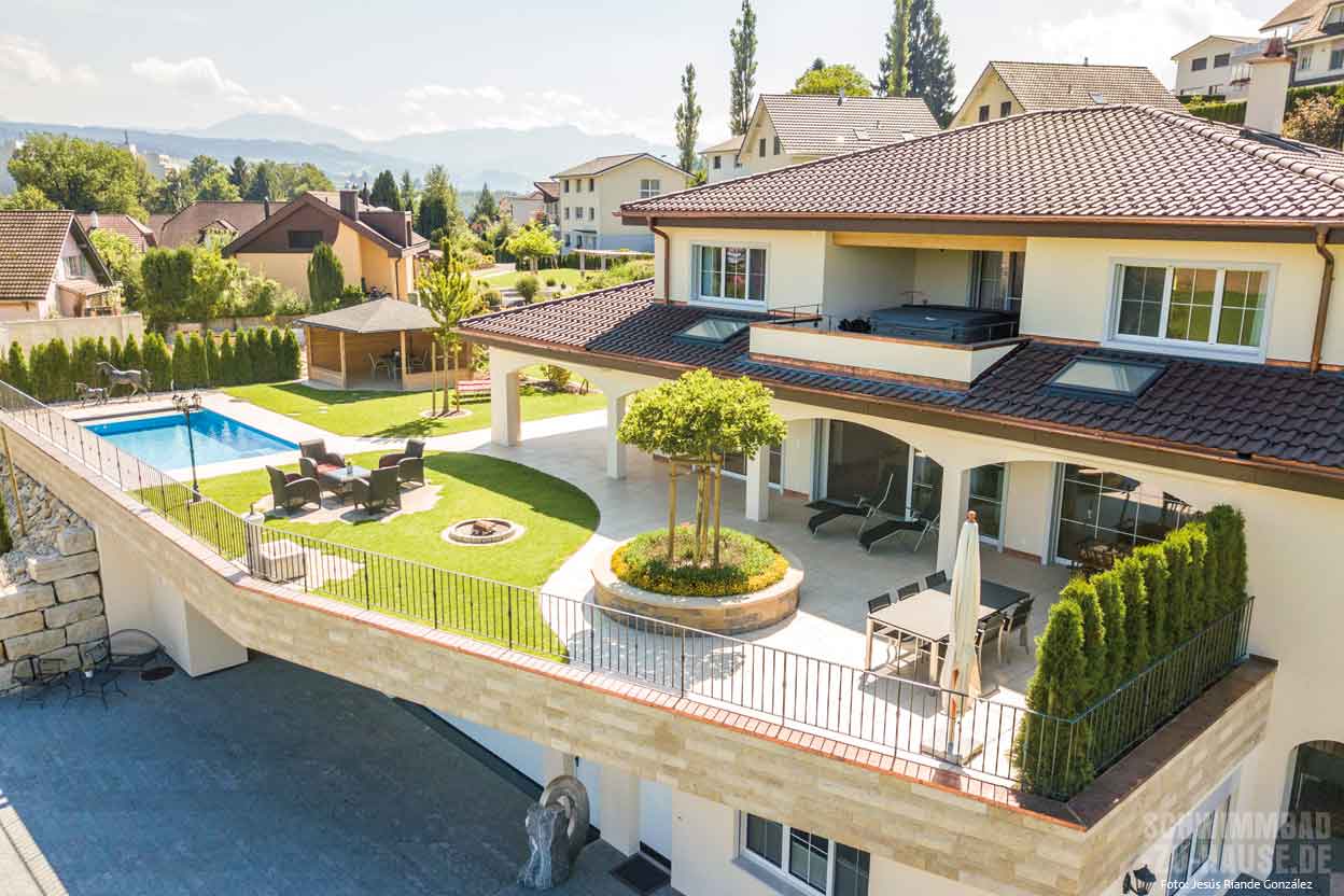 Das eigene Zuhause sollte ein Ort des Wohlfühlens, der Ruhe und der Entspannung sein. Nach einem langen Tag auf der Arbeit möchte man den Stress des Alltags hinter sich lassen und abschalten. Seit einiger Zeit freuen sich diese Bauherren aus der Zentralschweiz ganz besonders, wenn sie nach Hause kommen. Sie haben sich nicht nur den Traum vom eigenen Landhaus erfüllt, sondern ihren Garten mit einem privaten Freibad auch gleich in eine Wellnessoase der Extraklasse verwandelt.