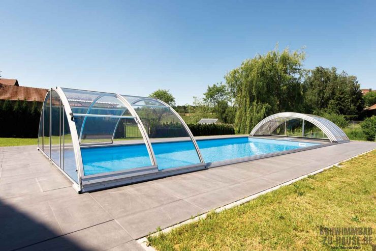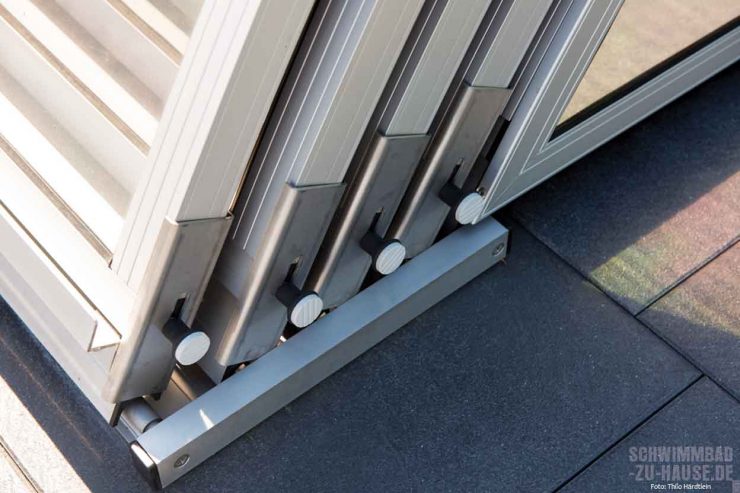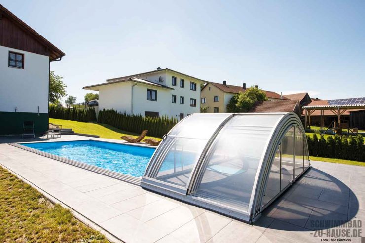 Ein besonderes Augenmerk kam außerdem der Poolüberdachung zu. Sie ist ein wahrer Allrounder in puncto Schutz. Zum einen verhindert sie im abgeschlossenen Zustand, dass die Enkelkinder unbeaufsichtigt in den Pool gelangen; zum anderen vermindert sie Wärmeverluste des Wassers, sodass die Badesaison zur Freude aller deutlich länger ausfällt. Und auch Blätter, Äste und Insekten, die das Wasser verschmutzen könnten, werden von einer geschlossenen Überdachung vom Poolwasser ferngehalten. Dies entlastet den Arbeitsaufwand bei der Poolpflege.