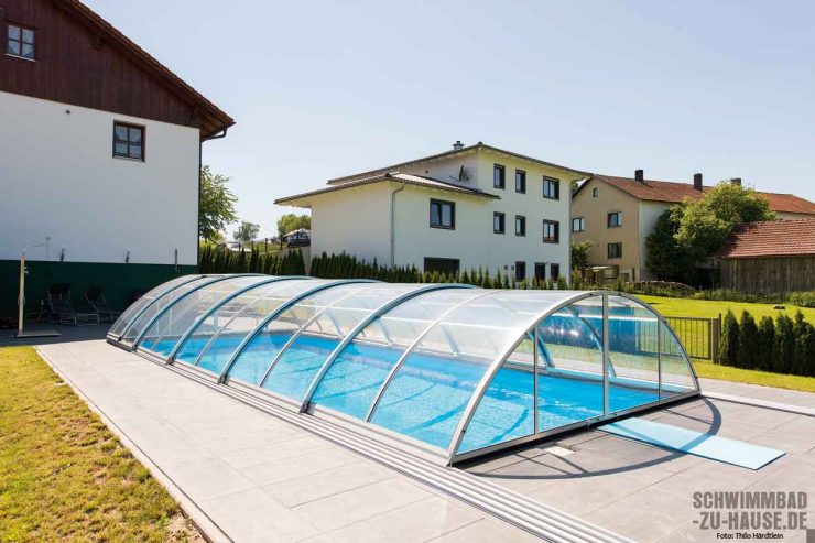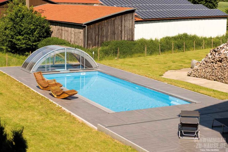 Schwimmtraining, Spaß für die Kleinen, Erfrischung an heißen Sommertagen und ein Stückchen Urlaub Zuhause – das erfüllte sich dieser Bauherr aus Niederbayern jüngst, als er in einen eigenen Pool investierte. Und es hat sich gleich mehrfach gelohnt: Das stattliche Schwimm-becken mit praktischer Überdachung für eine längere Badesaison beschert jetzt nicht nur ihm, sondern auch seinen zwei Söhnen samt Familie Freizeitgenuss pur.