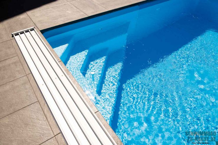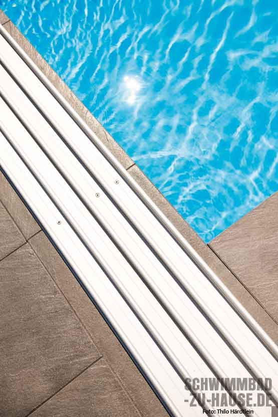 Apropos hygienisches Wasser: Hier setzte man einstimmig auf eine Aufbereitung des Wassers durch Salzelektrolyse. Dies ist besonders hautfreundlich und dank der entsprechenden automatisierten Pooltechnik überaus pflegeleicht. „Wir haben zudem einen Poolroboter, der das Becken regelmäßig reinigt und wir kaum selbst Hand anlegen müssen“, freut sich der Bauherr.