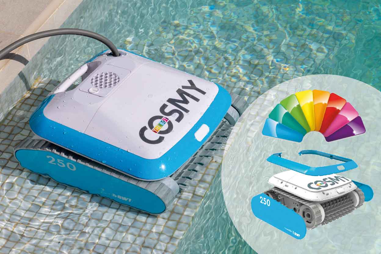 Nicht zuletzt ist das Modell COSMY 250 mit einem robusten, praktischen und ästhetischen Transportwagen ausgestattet. Mit den COSMY Poolrobotern ermöglicht Ihnen die BWT ein entspanntes Reinigen des Pools – die vielen ausgefeilten Funktionen sorgen für ein Hohes Maß an Komfort und freie Zeit. Entdecken Sie jetzt die Modelle und gestalten Sie Ihren Roboter nach Ihren Wünschen.