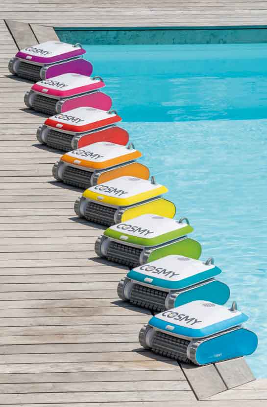 Zudem ist der COSMY doppelt so leicht wie die meisten herkömmlichen Poolroboter – ein Leichtgewicht unter den Poolsaugern. Mit seinem schnellen Wasserablaufsystem lässt er sich wunderbar leicht aus dem Becken heben – ideal für Ihren Rücken. Neben den verschiedenen Farben gibt es vier verschiedene Modelle COSMY 100, COSMY 150, COSMY 200, COSMY 250.