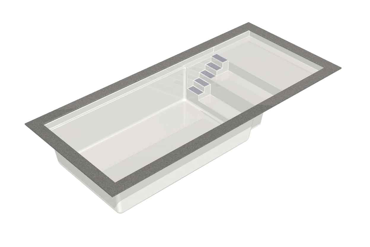 Badespaß in voller Länge und zu attraktiven Konditionen – das sind die charakteristischen Merkmale der beiden neuen VERANO Einstückbecken. Mit einer Breite von 320 cm folgen diese dem Trend hin zu schmäleren Pools und bieten mit einer Länge von 700 cm bzw. 800 cm sowie einem optionalen Loungebereich uneingeschränkt großes Badevergnügen für die ganze Familie. Wie bei den bisherigen Modellen verfügt das VERANO 700 als auch das VERANO 800 über eine exklusiv für D&W Pool gestaltete einseitige Treppenanlage für einen komfortablen Einstieg ins Becken. Der großzügige 60 cm tiefe Sitzbereich lädt zudem zum Entspannen im kühlenden Nass ein.