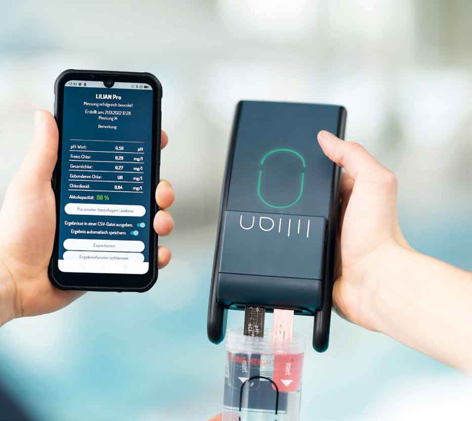 Am besten begegnet man diesen Fragen mit neuartigen Photometern – wie dem Wasseranalysesystem LILIAN der Fa. Lilian Labs GmbH aus Braunschweig. Es vereinfacht stark die täglichen Messungen der Wasserqualität, ein Knopfdruck genügt. Das ist nicht nur bis zu 10x schneller als mit herkömmlichen Photometern, sondern auch deutlich zuverlässiger. Durch den automatischen Messprozess können Fehler nicht mehr auftreten. Die Resultate entsprechen der DIN19643.