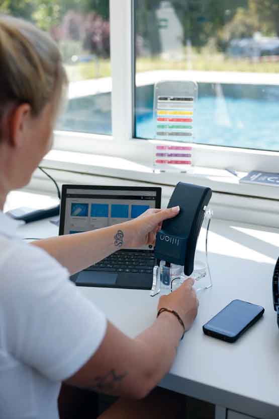 Nur wenige Sekunden nachdem das LILIAN- Messgerät die Wasserqualität ermittelt hat, erscheinen die Resultate in der Cloud- Software „LILIAN-Manager“, den entsprechenden Bädern und Becken automatisch zugewiesen. Sie werden automatisch benachrichtigt, wenn dabei Grenzwerte überschritten werden. Alle Messdaten können außerdem über Schnittstellen in bereits vorhandene Software übertragen werden. So haben Sie immer die volle Kontrolle.