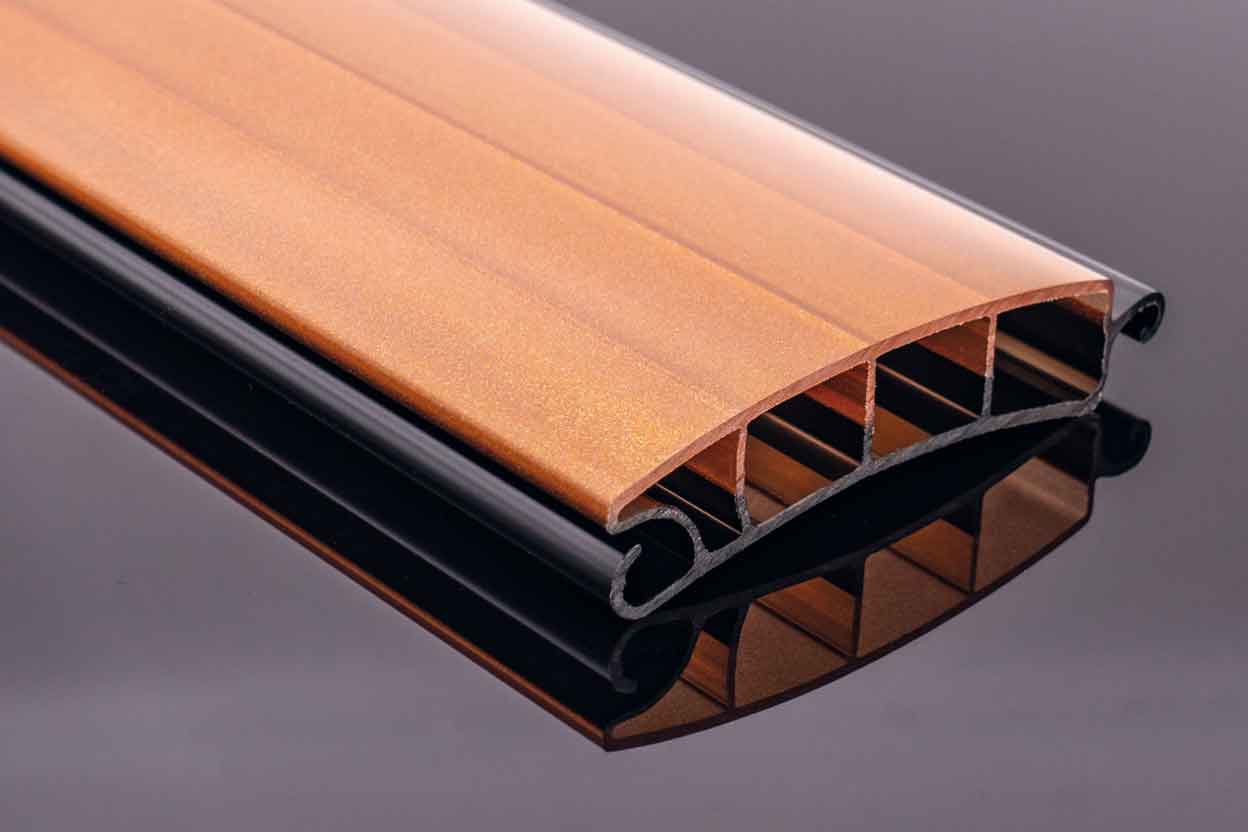 Wenn Nachhaltigkeit mit der Auswahl regionaler Lieferanten und hochwertiger Rohstoffe beginnt, endet sie beim Recycling. Tagtäglich tüfteln Rollo Solar-Mitarbeiter an Möglichkeiten, recyceltes Material einzusetzen. „Das stellt für uns eine große Herausforderung dar, weil auch die benötigte Energie für das Recycling selbst in die Nachhaltigkeitsbilanz einzahlt. Gleichzeitig werden wir keinesfalls Einschnitte bei der Produktqualität in Kauf nehmen“, betont Geschäftsführerin Hannah Thormann. In einem langen Innovationsprozess ist es nun endlich gelungen: Bei den Solarvarianten des Polycarbonatprofils 13/60 besteht die schwarze Unterseite zu fünfzig Prozent aus recyceltem Material.
