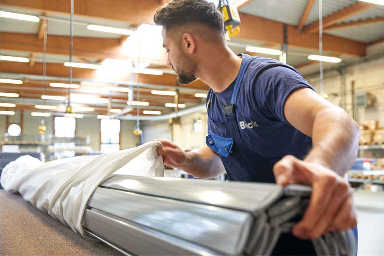 WaterBeck setzt sich aber nicht nur mit seinen Produkten für den Schutz der Umwelt ein. Auch in Fertigung und im Vertrieb versucht das Unternehmen Ressourcen einzusparen. So werden alle Kunststoffreste, die beim Zuschnitt der Lamellen anfallen, wieder in den Wertstoffkreislauf zurückgeführt. Dasselbe gilt für Edelstahlteile, die bei der Produktion der Aufrollvorrichtungen als Abfall entstehen. Darüber hinaus achtet WaterBeck schon seit langem auf eine strikte Trennung von Wertstoffen und Restmüll. Eine weitere ressourcenschonende Maßnahme ist die Wiederverwendung der Einweg-Paletten, die für den Transport der Lamellen eingesetzt werden. Sie pendeln zwischen den Lieferanten und WaterBeck, sodass kaum neue Paletten benötigt und somit große Mengen Holz eingespart werden.