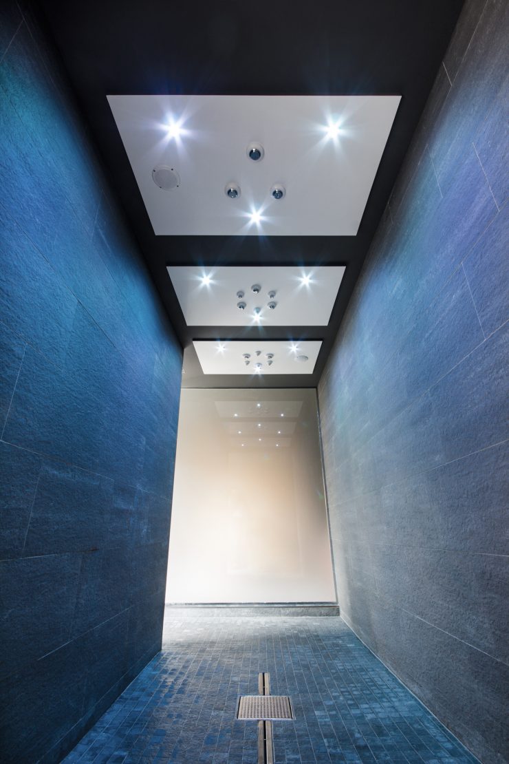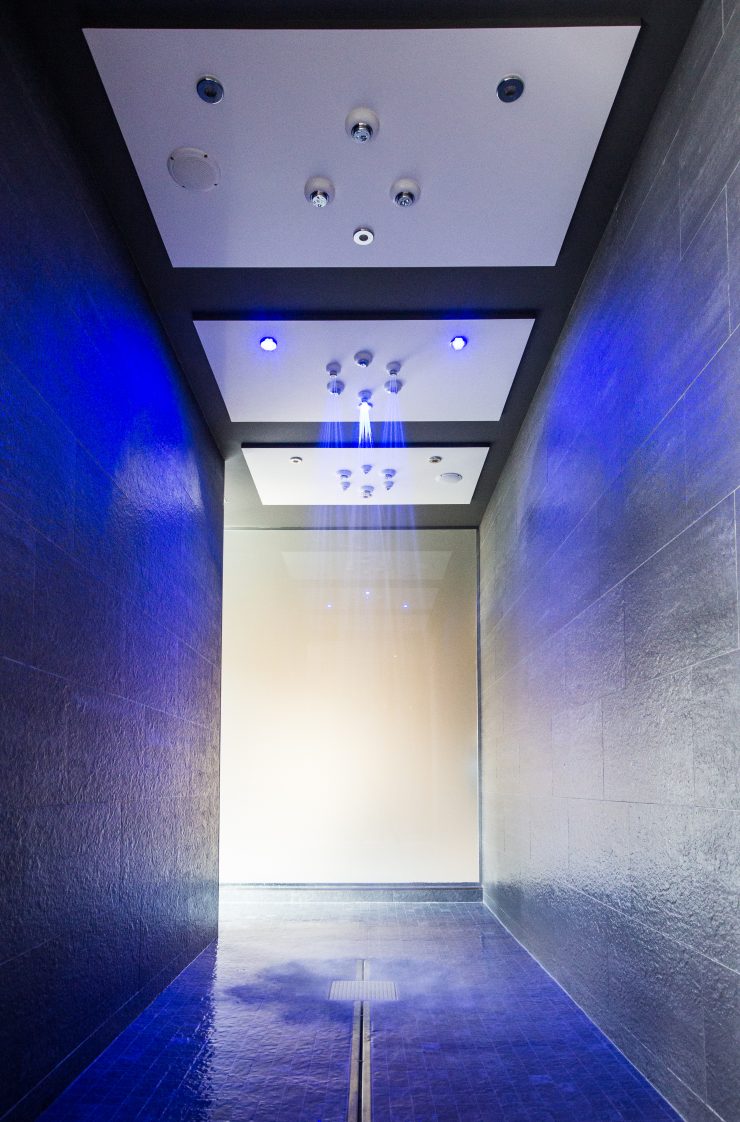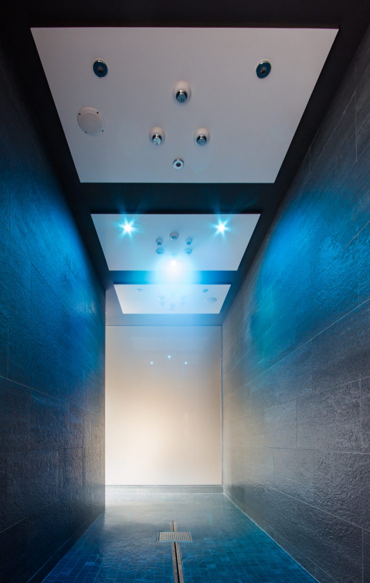 Duschtunnel stellen eine besondere Form der Erlebnisdusche dar. Diese schaffen für Anwender/innen ein einzigartiges und spannendes Erlebnis. Die Anwender/innen werden innerhalb des Tunnels von einer Attraktion zur nächsten geführt und erleben in jedem Abschnitt ein besonderes Highlight. Das Programm beginnt nach Abruf per Taster oder startet automatisch mithilfe von Sensoren am Eingang des Tunnels. Die Systeme für Duschtunnel sind individuell konfigurierbar. Die Anzahl der Zonen eines Duschtunnels und das Design der Taster und Deckenelemente lassen sich einfach an die jeweilige Projektplanung anpassen.