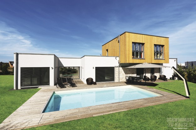 Die junge Familie Cartier aus dem Elsass wünschte sich ein modernes, freigeplantes Haus aus der Feder eines Architekten. Zudem sollte neben klaren Linien, auch das Wohlbefinden nicht zu kurz kommen. Mithilfe des Fertighausherstellers Weberhaus und lokaler Poolprofis wurde in Rekordzeit ein individuelles Anwesen geschaffen, das der Bauherrenfamilie modernsten Wohnkomfort mit Wellnesscharakter bietet.