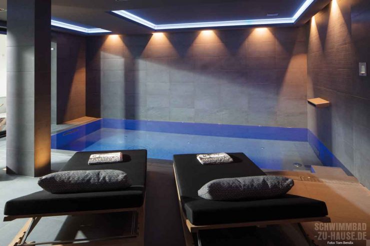 Beide Effekte lassen sich bei dieser extravaganten Schwimmhalle, die im Souterrain einer Stadtvilla im Herzen einer nordrhein-westfälischen Großstadt entstanden ist, sehr schön beobachten.