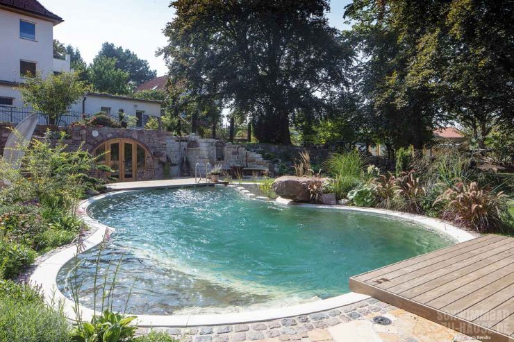 Naturpools sind die ideale Lösung für alle Wasserfreunde, die kein Chlor in ihrem Schwimmbecken haben möchten. Was sich aus einer solchen Anlage machen lässt, hat Landschaftsgärtner Werner Eyßer im Garten eines Ehepaares in einer sächsischen Kleinstadt bewiesen. Pool und Umgebung bilden eine harmonische Einheit und werden perfekt ergänzt mit einer Gegenstromanlage, Rollladenabdeckung und Pooltechnik.