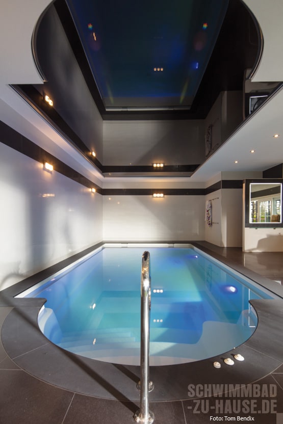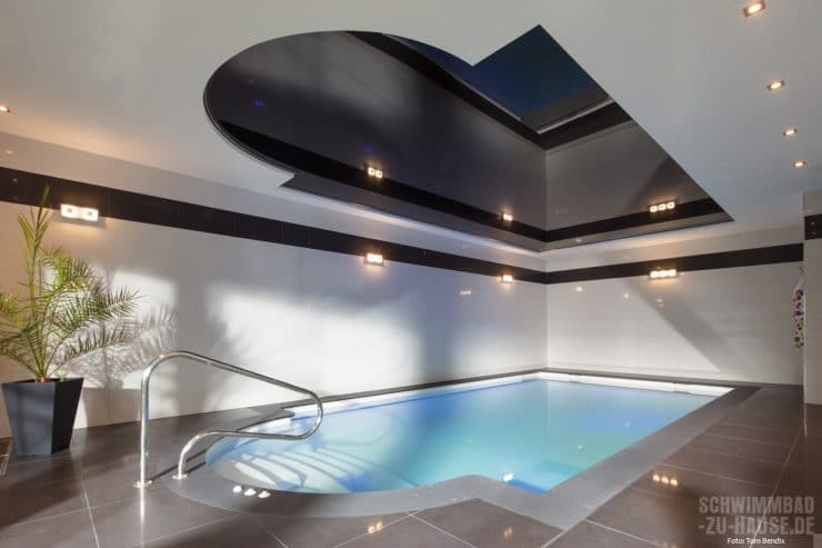 „Die größte Hürde bei der Umsetzung des Plans war es, das Becken in die vorhandene Halle zu bekommen. Es stand nur ein großes Fenster zur Verfügung und der Platz war insgesamt sehr beengt. Wir mussten mit sehr viel Fingerspitzengefühl arbeiten“, erklärt uns beim Interview der Schwimmbadprofi Stephan Glocke.