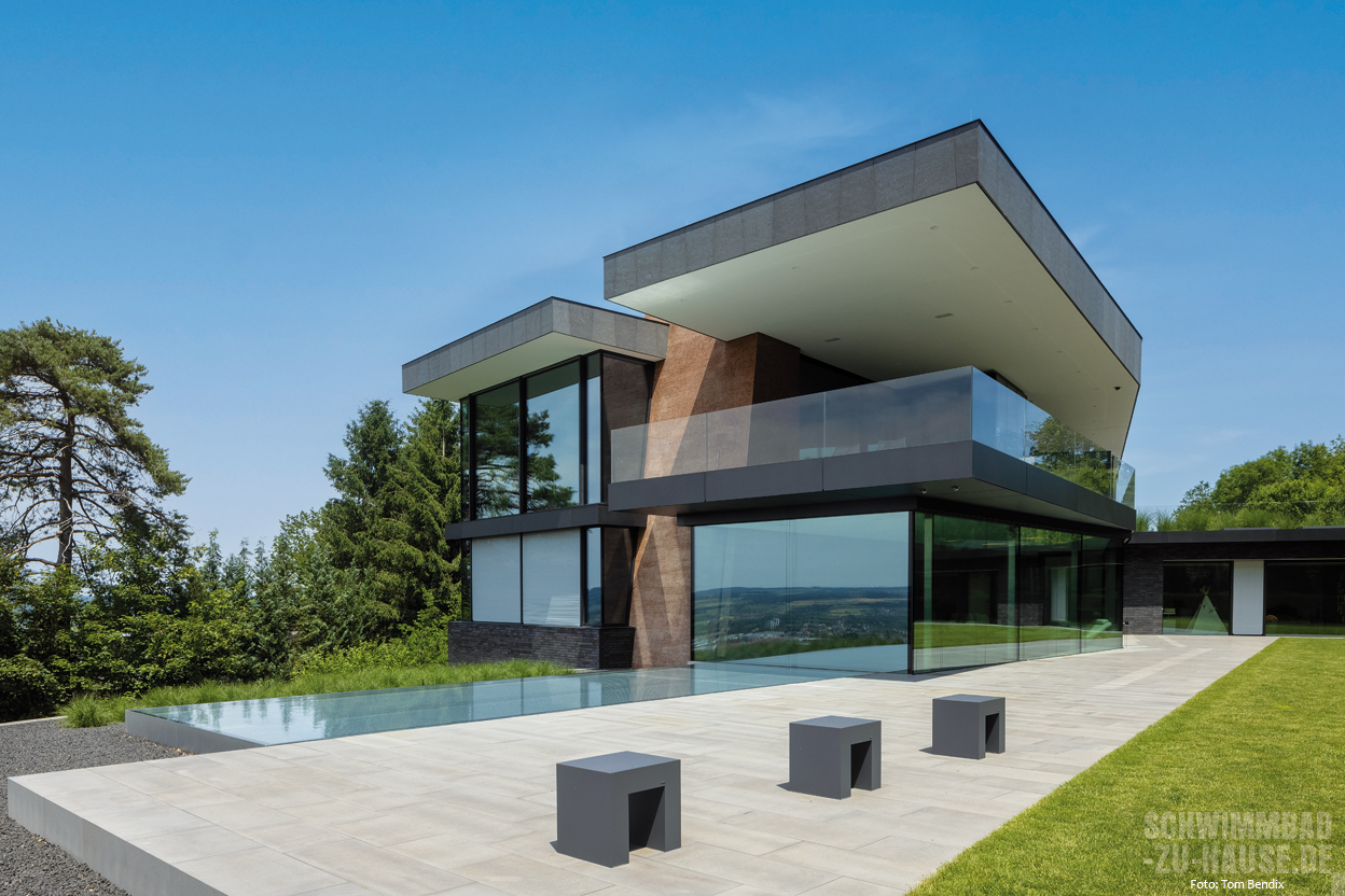 Schon allein die Gestaltung des Hauses dieser Familie in Süddeutschland versetzt den Betrachter ins Staunen. Der neu geschaffene Poolbereich sollte daher auch die Ästhetik des Grundstücks fortführen.