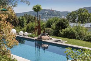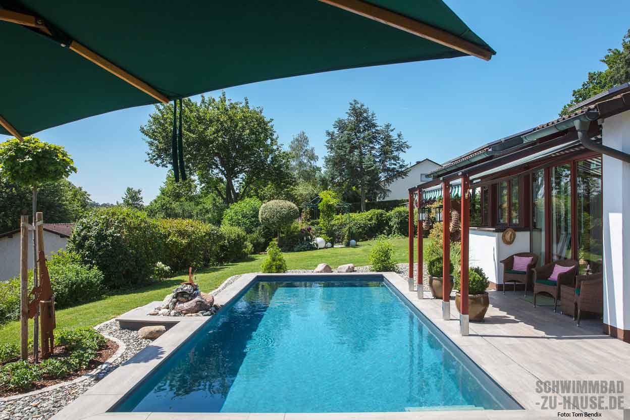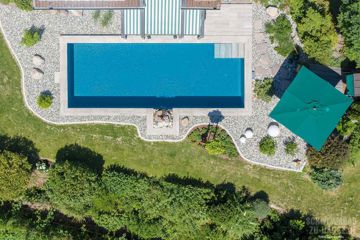 „In den letzten 21 Jahren besaßen wir einen Schwimmteich, der jedoch zum einen viel Arbeit bedeutete und nach der langen Zeit wegen eines Lecks sanierungsbedürftig war“, rekapitulieren die Bauherren mit Affinität zum Schwimmen. Jetzt war der Moment für eine neue Lösung da. „Das Ehepaar wünschte sich einen modernen Pool mit hochwertiger Wasseraufbereitung, der zum einen wenig Arbeit macht und sich zum anderen optisch harmonisch in die Natur des Gartens einfügt“, erinnert sich der erfahrene Schwimmbadbauer Karsten Höhlein von Höhlein Schwimmbad & Wellness, der mit dem Poolprojekt beauftragt wurde.