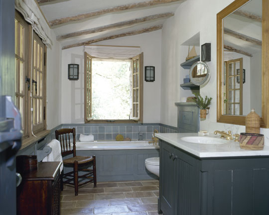 Wo immer es möglich war verwendete der in Afrika geborene Zarzycki Baustoffe aus der Region. „Um dem südfranzösischen Flair gerecht zu werden benötigten wir vorwiegend Bruchstein, Pinienbalken, gebrannte Ziegel und antike Terrakotta – Fliesen, alles unkomplizierte rustikale Materialien. Schließlich ist das ein Ferienhaus, das muss praktisch und unverkünstelt sein“.