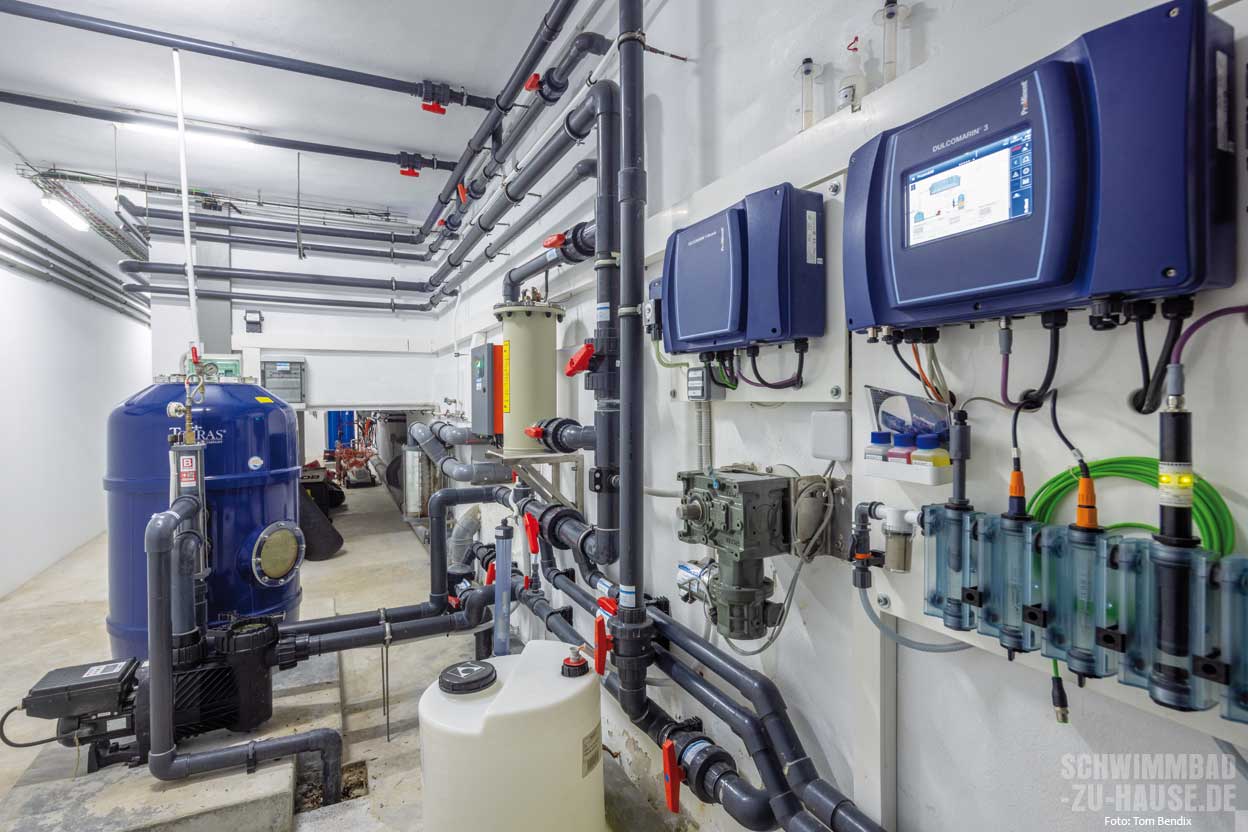 Komplettiert wird das Projekt durch fortschrittliche Schwimmbadtechnik: Ein Rollladen von BAC Pool Systems sorgt für Sicherheit und Schutz, während Pumpen von Behncke und eine Poolsteuerung von Prominent kristallklares Wasser und optimale Badebedingungen garantieren. Eine Dosieranlage von Idegis hält das Wasser zudem perfekt in Balance. Nach Einbruch der Dunkelheit verwandeln Scheinwerfer von Fluidra den Pool in ein Lichtermeer, das eine sanfte, stimmungsvolle Atmosphäre auf der Terrasse schafft. Das ist der Inbegriff mediterranen Lebensstils!