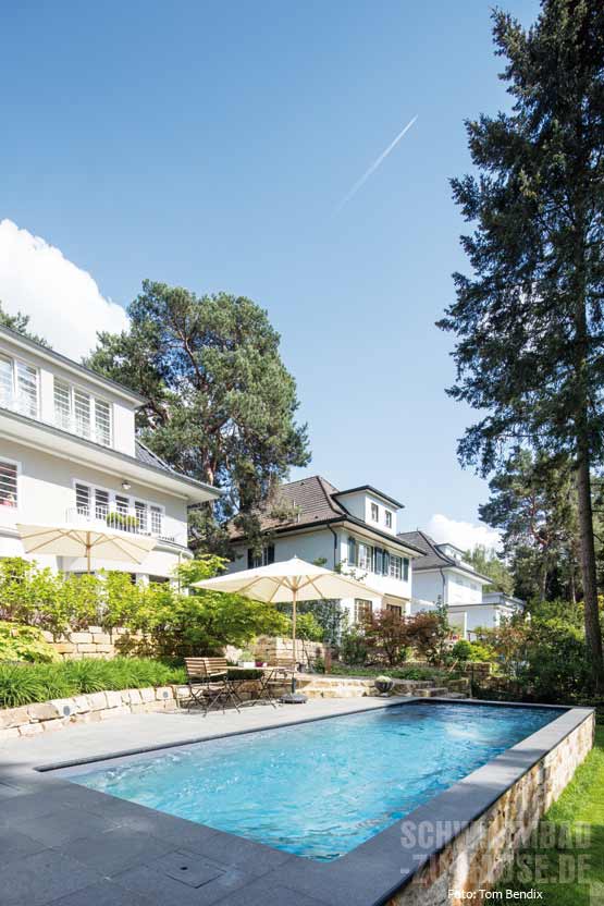 Man muss nicht erst sterben, um ins Paradies zu gelangen, solange man einen Garten hat“, besagt ein altes persisches Sprichwort. Getreu diesem Motto haben die Bauherren aus Berlin-Dahlem ihren Garten sorgsam angelegt. Die wunderschöne Anlage ist für sie von besonderer Bedeutung. Deshalb wollten sie den Bau eines Swimmingpools zwar durchführen, waren aber unsicher bezüglich der Integration in die natürliche Umgebung. Groß war die Befürchtung, dass das Schwimmbecken die friedliche Grünfläche und somit das Gesamtbild stören könnte.