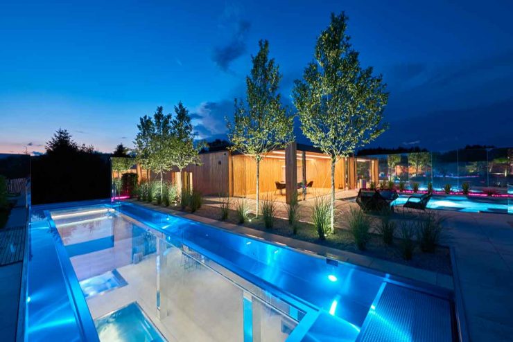 Diese Kombination – Edelstahlpool mit einem Glasboden – stellte eine besondere Herausforderung für die Statiker und Konstrukteure dar: Sieben Tonnen schwer, 35 Quadratmeter groß und sieben Zentimeter dick ist die Scheibe, die in den Dachterrassenpool integriert wurde. Das oberösterreichische Familienunternehmen beweist mit dieser Anlage einmal mehr seine Leistungsstärke bei der Realisierung individueller und qualitativ hochwertiger Projekte.