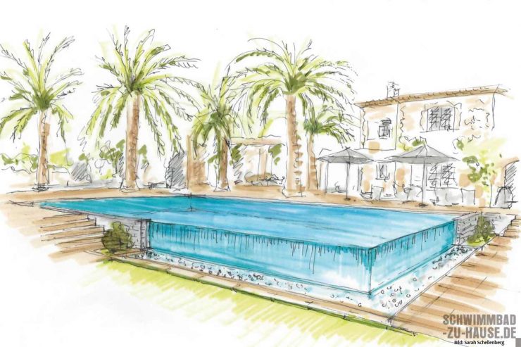 Nicht zuletzt sehe ich mir die Bauherren und deren Einrichtungsstil genauer an und frage nach Gestaltungsvorlieben. Die Wasserfarbe und die gesamte Stimmung der Poollandschaft hängt von den Baumaterialien ab. Es ist wichtig, herauszufiltern, welches Ergebnis sich der Bauherr wünscht.