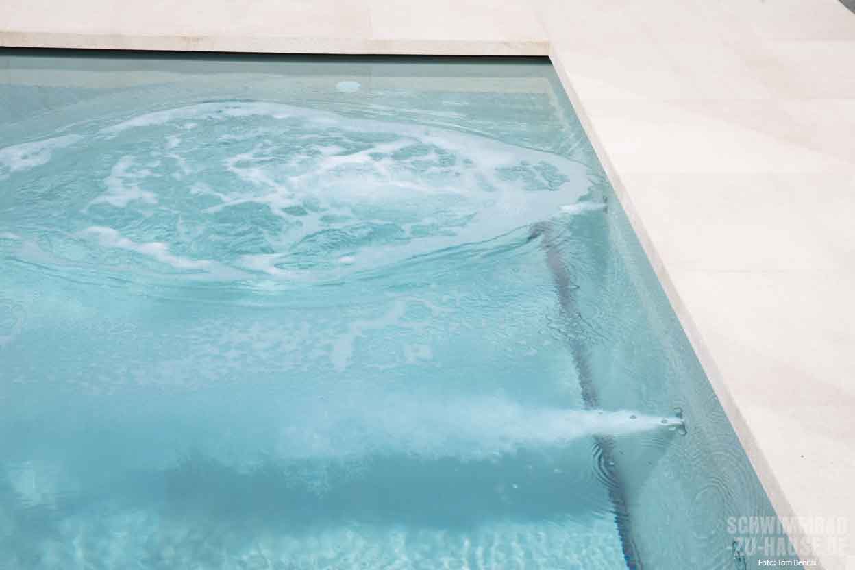 „Da der Kunde beruflich aus dem technischen High-End-Bereich kommt, stand fest, dass sowohl hinsichtlich der Wasseraufbereitung als auch bei den Einzelkomponenten des Schwimmbads hochwertigste sowie innovative Produkte zum Einsatz kommen sollten“, erinnert sich Ulrich Kapfer. Mit einem fein abgestimmten Ensemble aus Filter, Pumpe, Dosieranlage und Poolsteuerung von Ospa können die Bauherren jetzt das neue Schwimmbad in vollen Zügen genießen. „Wir müssen nur 15 Minuten in der Woche mit der Wasserpflege verbringen – Kontrolle und Auffüllen, fertig!“