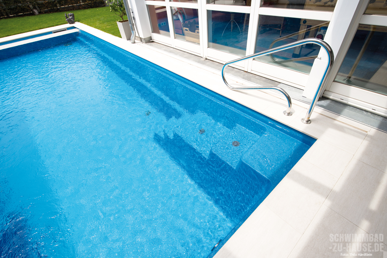 „Die Besonderheit beim Bau dieser Anlage war die Tatsache, dass das Becken anstelle der Terrasse zwischen Wohn- und Arbeitszimmer platziert werden musste. Die perfekte Umsetzung eines solchen Bauvorhabens ist nur dann garantiert, wenn alle Arbeiten von einem Poolprofiteam vorgenommen werden. Bei diesem ganz speziellen Projekt war es zudem hilfreich, dass der Besitzer als erfahrener Architekt bei der Planung seine Fachkompetenz und die Kenntnis der örtlichen Gegebenheiten einbringen konnte“, verrät uns beim Interview Franz Josef Reps.