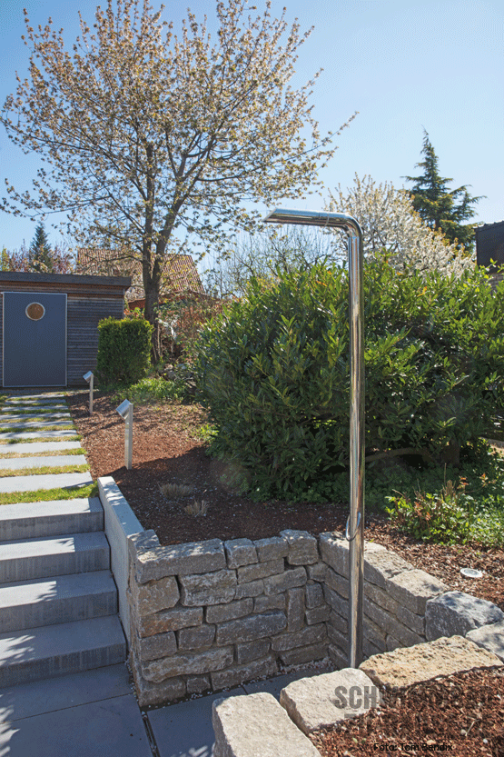 „Wir wollten eine Ausstellungsfläche für die von uns produzierten Sunballs in einer angenehmen Relax-Umgebung schaffen. Unser Nachbar, der Garten- und Landschaftsbauer Timm Letsch, hat uns basierend auf unseren Skizzen einen schönen Plan entworfen, der dieses Ziel umgesetzt hat“, erzählt Bollmann. Die Anregungen dafür holte sich der Hausherr in verschiedenen Architekturzeitschriften.