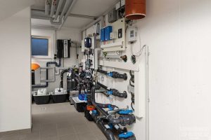 Der „SSF Pool One“ ist zudem in puncto Technik auf dem neuesten Stand. Präzise platzierte Einlaufdüsen in Kombination mit dem Skimmer garantieren eine optimale Beckenhydraulik, während die integrierte Wärmepumpe das Wasser auf angenehme Temperaturen bringt und somit den Pool ganzjährig nutzbar macht. Das technisch hochmodern ausgestattete System ermöglicht dank seines Wirkungsgrades eine effiziente und umweltfreundliche Beheizung des Pools. Darüber hinaus schützt die innovative Roll-