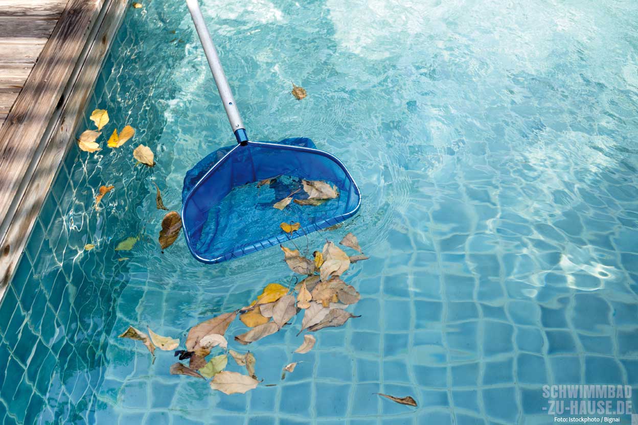 Soll verhindert werden, dass das Badewasser durch diese ungewünschten, aber unvermeidlichen Eintragungen zu einer trüben, unansehnlichen und gesundheitlich bedenklichen Brühe wird, empfiehlt sich eine Mischung aus physikalischer und chemischer Wasseraufbereitung. Basis der physikalischen Reinigung sind korrekt funktionierende Filter. Zudem sollten Blätter oder schwebender Schmutz mit Hilfe von Keschern händisch abgefischt, hartnäckige Verschmutzungen und Schmutzränder mit Reinigungsbürsten entfernt und Boden sowie Wände des Beckens regelmäßig mit einem Poolsauger oder -roboter gereinigt werden.