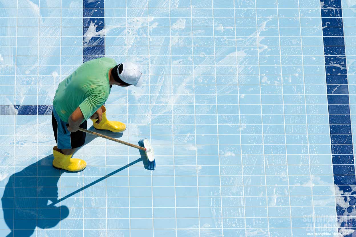 Sind die Verunreinigungen gelöst, müssen die Oberflächen mit klarem Frischwasser abgewaschen und das Schmutzwasser nochmals entfernt werden. Handelsübliche Haushaltsreiniger sollten nicht zur Schwimmbadreinigung verwendet werden, weil sie aufgrund ihrer Inhaltsstoffe für Becken oder Armaturen oftmals schädlich sind. Speziell für die Poolreinigung entwickelte Waschmittel entfernen hingegen hartnäckige Ablagerungen, ohne das Becken zu schädigen. Vielmehr pflegen viele der Waschmittel auch gleichzeitig die hochwertigen Poolmaterialien und -oberflächen. Ist das Becken sauber und das Schmutzwasser entfernt, empfiehlt sich das Auftragen eines Algicids auf Wänden und Boden. Ziel ist es, einem Algenwachstum vorzubeugen und zu einem späteren Zeitpunkt unnötigen Reinigungsaufwand zu vermeiden.