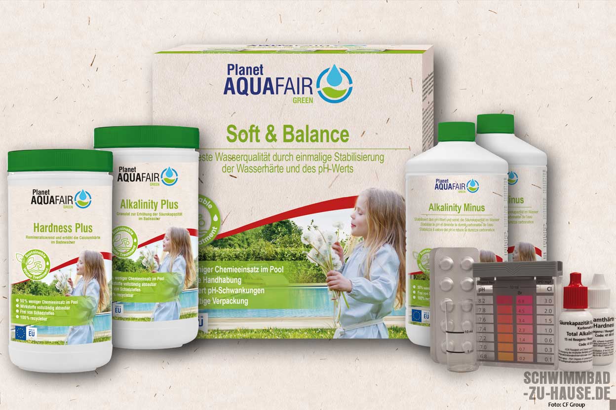 Die chemische Wasseraufbereitung setzt sich laut Bayrol aus den vier Pflegeschritten pH-Regulierung, Wasserdesinfektion, Algenverhütung und Flockung zusammen. Um allen vier Punkten komfortabel und einfach gerecht zu werden, hat Bayrol „Chlorilong Ultimate 7“ entwickelt. Die 300 g Chlortablette sorgt für die Stoßdesinfektion des Sandfilters, eine Dauerdesinfektion des Poolwassers, Algenverhütung, Flockung, Härte- und Chlorstabilisierung. Wird die Tablette etwa alle zehn Tage in den Skimmer zugegeben, garantiert sie ein perfekt gepflegtes und kristallklares Wasser. Bei der CF Group bietet sich die, dieses Jahr neu auf dem Markt gekommene, nachhaltige Wasserpflegeserie „Planet Aquafair Green“ an. Mit dem sogenannten „Soft & Balance Set“, dem Herzstück der Serie, wird der ideale Wasserzustand durch eine einmalige Korrektur der Wasserparameter Calciumhärte, Säurekapazität (Karbonathärte) und pH-Wert eingestellt. Ist die Balance erreicht, wirkt das Wasser als Puffer und kann auf Schwankungen im pH-Wert reagieren. Eine minimale Korrektur während der Saison ist dadurch ausreichend. Durch die ideale Einstellung der Wasserparameter wird die Schwimmbadausrüstung geschont, die Effektivität der eingesetzten Desinfektions- und Flockungsmittel steigt und trägt dadurch zur Hygiene und zum Wohlbefinden beim Schwimmen bei. Die „BWT Multifunktional-Tabletten“ enthalten neben Chlor zur Desinfektion je nach Produkt noch zusätzliche Komponenten wie Algicid (zur Algenprävention) und Flockungsmittel (für klares Wasser), und sind damit ideal für die Ganzjahrespflege geeignet. Und auch die „Sopra- Langzeit-Tabletten Maxi“ sind zur Dauerchlorung und dem Erreichen eines idealen Chlorwerts geeignet.