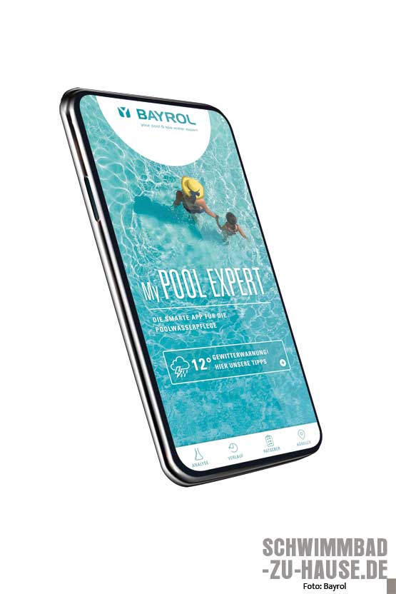 Inwieweit diese Mittel als Kombi- oder einzelne Produkte, in flüssiger Form oder als Pulver zugegeben werden, hängt von verschiedenen Faktoren, wie beispielsweise händische oder automatische Zugabe per automatischer Mess-, Regel- und Dosieranlagen (MRD-Anlage), Hersteller oder individuelle Vorliebe ab. Die CF Group empfiehlt für die manuelle Dosierung Desinfektionsprodukte in Granulat- oder Tablettenform. Für die automatische Dosierung können flüssige Produkte, wie beispielsweise „Chlor flüssig“ verwendet werden. Werden MRD-Anlagen genutzt, können die „Sopra-pH-Senker flüssig“ und „Sopra-pH-Heber flüssig“ als gebrauchsfertige pH-Regulatoren verwendet werden. Ein richtig eingestellter pH-Wert ist notwendig, damit die weitere Chemie und Desinfektionsprodukte gut wirken können. Unabhängig von der Art der Dosierung und der Zustandsform des Produkts gilt, dass zuerst der Istzustand gemessen, mit dem Sollzustand verglichen und dann bei Bedarf reagiert werden muss. Entweder von Hand oder mithilfe einer MRD-Anlage, die von Poolwasser durchflossen wird, dabei mittels Sensoren, die für einen ungetrübten Badespaß relevante Werte misst, bei Bedarf automatisch korrigiert und anschließend das „perfekt aufbereitete“ Wasser zurück in das Becken schickt. Wollen Sie die Werte überall und jederzeit abrufen können, bietet sich zum Beispiel die neue „My Pool Expert“ App von Bayrol an. Kostenlos und einfach zu bedienen, können Poolbesitzer jederzeit und überall mithilfe eines Smartphones oder Tablets hilfreiche Informationen zur Poolpflege abrufen. Nach der Eingabe der Pool- und Wasserparameter führt die App eine präzise Analyse durch und liefert Schritt-für-Schritt-Anweisungen und Dosierungsempfehlungen zur optimalen Wasserpflege.