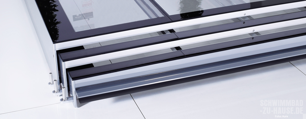 Derzeit werden im Schwimmbadüberdachungsbereich bevorzugt neuartige, schlagzähe Polycarbonate in glasklarer Ausführung mit beidseitigem und 100 %-igem UF-Schutz eingesetzt. Bei einigen Modellen ist alternativ sogar Sicherheitsglas lieferbar. Die Abdichtungen zwischen den Segmenten bestehen aus Silikonmaterial, die in die Aluminiumprofile eingearbeitet wird. Durch eine entsprechende Anordnung der Dichtungen ist eine Beschädigung der Verglasungsoberflächen durch die Schiebevorgänge ausgeschlossen. Für die Sicherheit werden bei modernen Überdachungen automatische Ver- und Entriegelungssysteme mit einer zentralen Verschließbarkeit angeboten. Die Krönung folgt in Zukunft durch sensorgesteuerte, solarstrombetriebene Motorantriebe mit Zentralverriegelung sowie Soft-Start- und Soft-Stopp-Funktion. Die Ansteuerung erfolgt dann bequem über eine Funkfernbedienung.