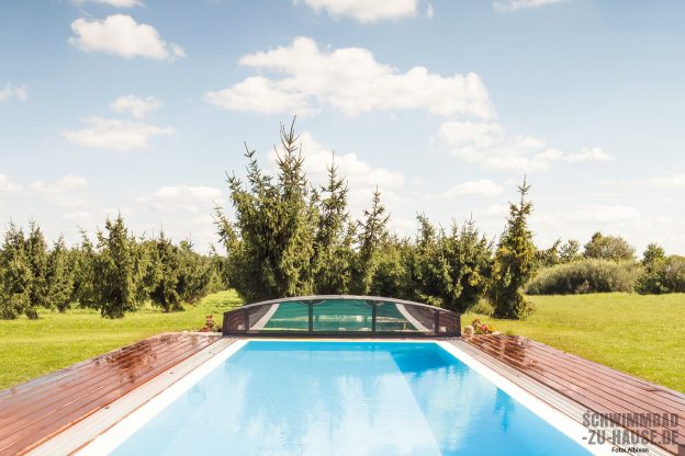 In unseren Breitengraden ist es schon fast ein Muss, einen Außenpool zu überdachen. Die Anzahl der warmen Sonnentage ist zu gering, um den größten Teil des Jahres in wohltemperiertem Wasser  zu schwimmen. Lichtdurchlässige Überdachungen bringen bei Sonneneinstrahlung sehr viel Wärme in den Innenbereich und erwärmen dadurch das Poolwasser. Nachts verhindert die Über- dachung größtenteils die Verdunstung und somit den Entzug von Wärme aus dem Wasser. Umweltschmutz und Blätter werden durch eine Überdachung vom Pool ferngehalten. Die Folge: weniger Reinigung, weniger Wasserpflegemittel. Nach dem langen Winter wird der Saisonstart durch einen wesentlich geringeren Pflegeaufwand des Pools erleichtert. Überdachungen leisten einen großen Schutz für Kinder und Tiere. Unbeaufsichtigte Pools können verschlossen werden. Ein Pool ist wie ein Magnet für kleine Kinder und Tiere. Der Vorteil einer Überdachung ist dennoch, dass diese leicht und einfach vom Becken geschoben werden kann.