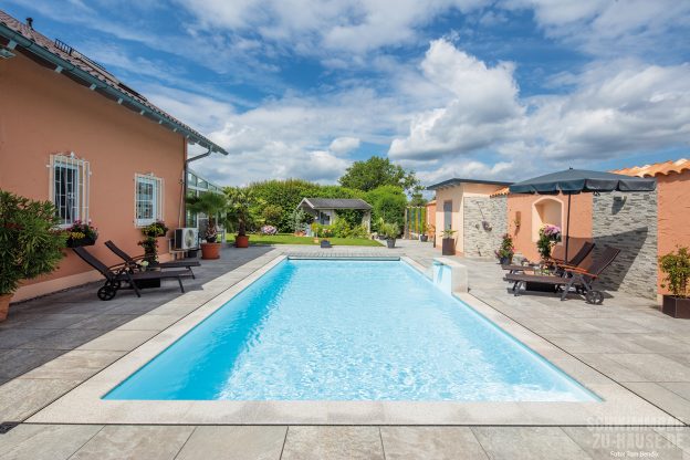 Hatten Sie bestimmte Vorstellungen hinsichtlich des Pools und der Technik? Wichtig war uns vor allem der Aspekt der Wasseraufbereitung. Aufgrund der schonenden Eigenschaften für die Haut wollten wir unbedingt einen Salzwasserpool haben. Darüber hinaus dachten wir zunächst über ein Folienbecken nach, haben uns dann aber gemeinsam mit den Profis von Reps für einen Compass-Pool entschieden und sind bis heute sehr glücklich darüber.