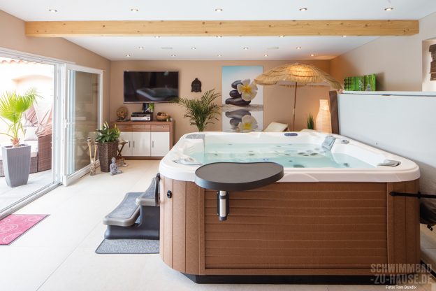 Was würden Sie sagen sind die drei Highlights Ihrer Wellnessoase? Das Beste an unserer privaten Entspannungswelt ist die Ruhe, die wir genießen können, da wir keine direkten Nachbarn haben. An zweiter Stelle würde ich das Ambiente nennen, das uns von Anfang an sehr wichtig war. Last but not least ist es unser Whirlpool, der das ganze Wellness-Paket perfekt abrundet.