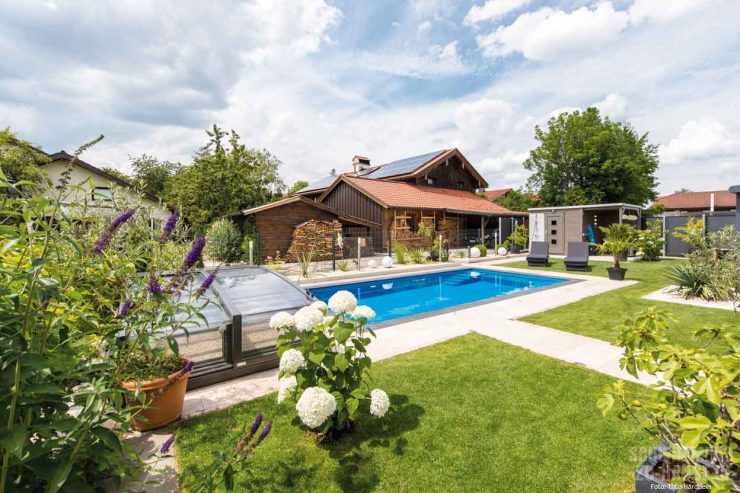 Wer kennt das nicht? Schon von klein auf besaß Wasser eine große Anziehungskraft auf uns. Als Kinder mussten wir in jede Pfütze springen, in der Badewanne spielten wir meist so lange, dass uns vor Kälte die Zähne klapperten und die Ausflüge ins Freibad waren an heißen Sommertagen unser absolutes Highlight. Damals dachten wir uns oft: „Wenn ich groß bin, habe ich bestimmt auch mal einen Pool!“ Genauso erging es auch den beiden Bauherren aus dem bayerischen Brunnthal. Schon von Kindheit an begleitete sie der Wunsch nach einem eigenen Schwimmbad im Garten. Jetzt, im Erwachsenenalter, sind beide selbstständig und viel beschäftigt. Um den stressigen Arbeitsalltag hinter sich zu lassen, wollten sie sich eine kleine Oase der Entspannung schaffen.